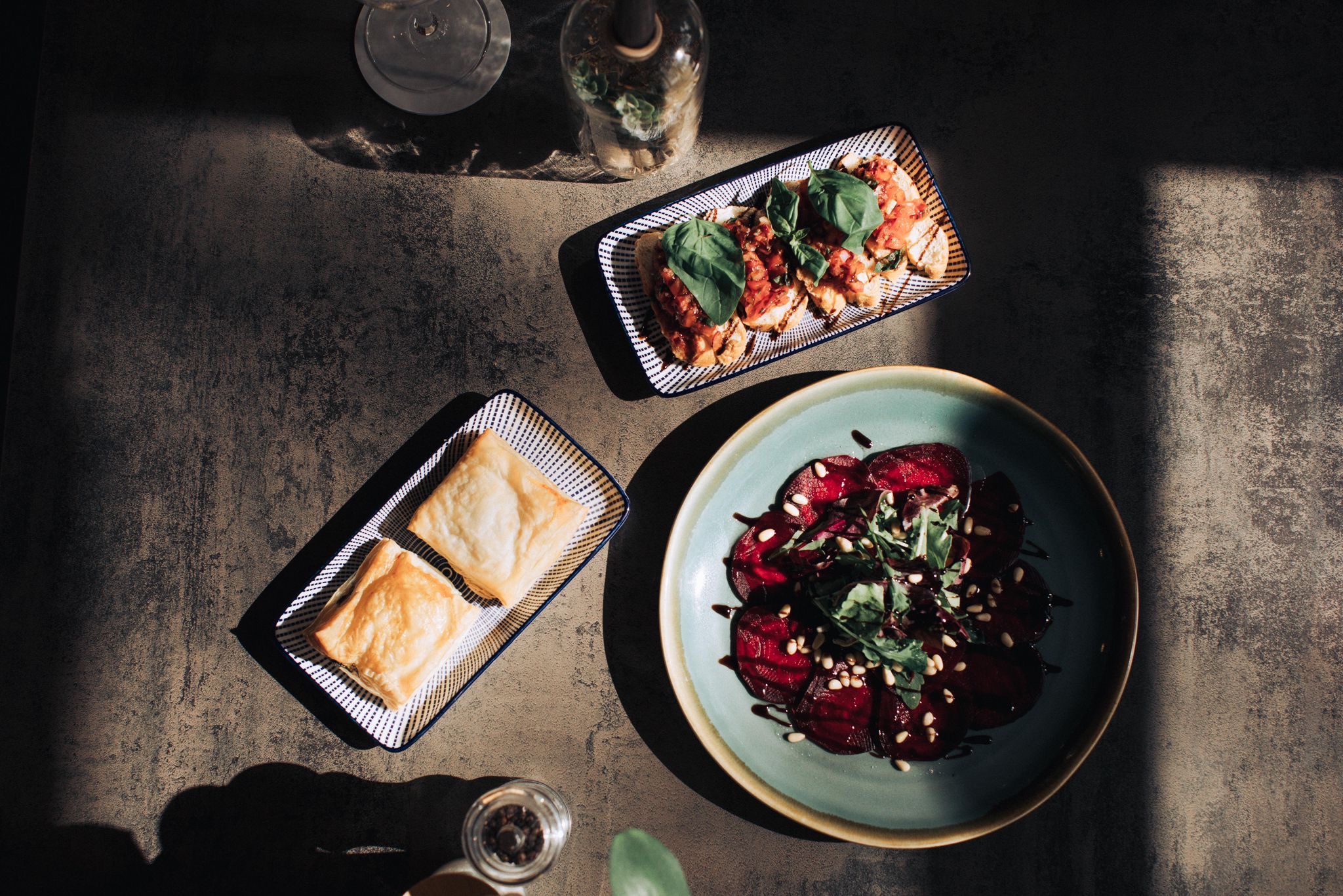 Carpaccio von Roter Beete & Fetakäse, Walnuss & Thymian-Honig